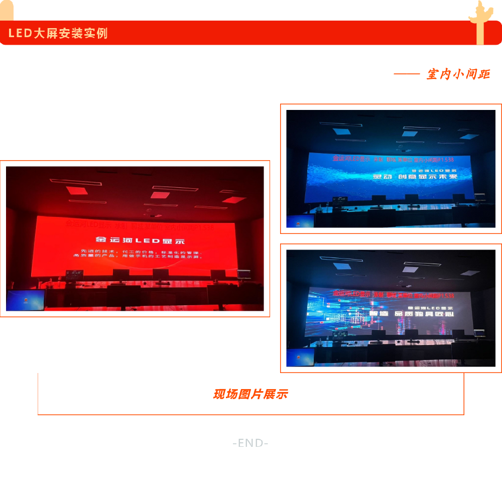 1.對(duì)比度非常高,白平衡一致,顯示色彩均勻,畫面清晰度高,能滿足現(xiàn)場(chǎng)直播的要求;2.超高刷新頻率,完全杜絕掃描線出現(xiàn),滿足舞臺(tái)拍攝的需要,呈現(xiàn)完美效果。